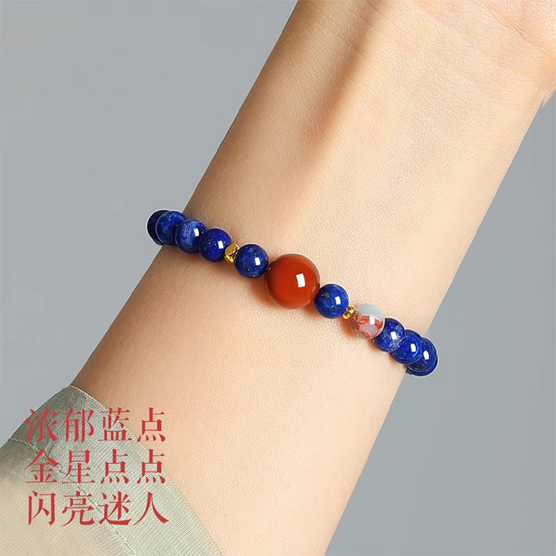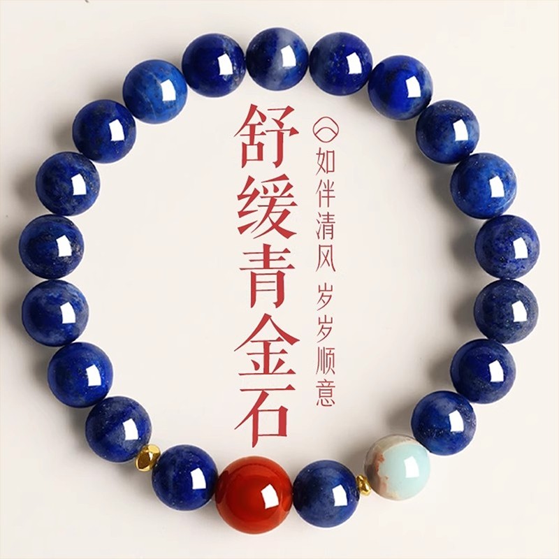 青金石手串真玉石手镯素圈手饰青金石天然正品珠子转运珠玉手链女