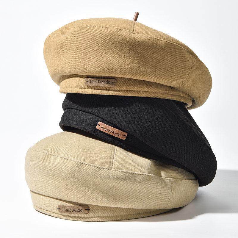 显脸小贝雷帽女秋冬大头围毛呢蓓蕾帽子棕色画家帽小头围八角帽