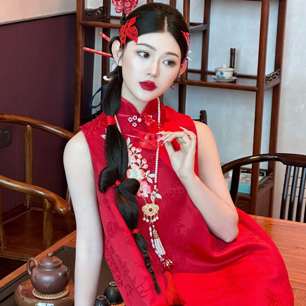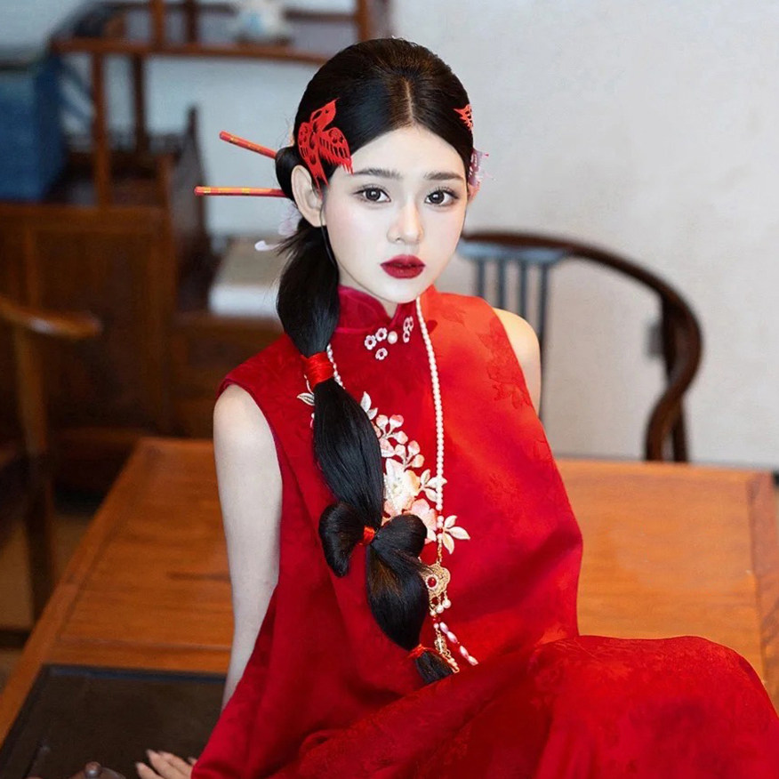 新中式新款手工扭扭辫拳击辫麻花辫子高马尾蝴蝶结假发脏辫秀禾