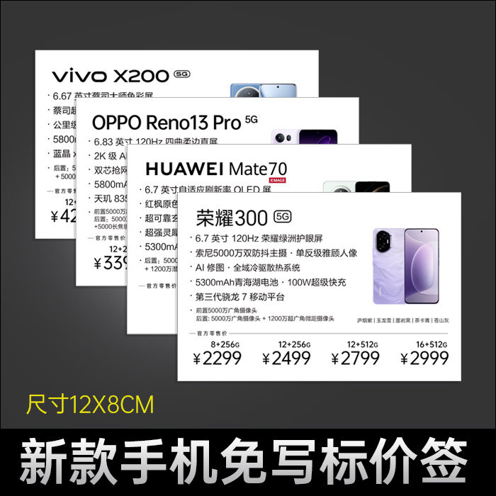 手机标价签价格牌适用于华为免写参数功能标签OPPO荣耀价格签