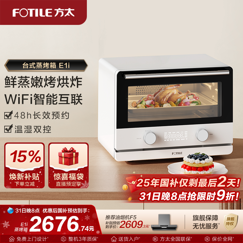 方太台式蒸烤烘炸一体机E1.i智能家用大容量厨房蒸烤电器旗舰店