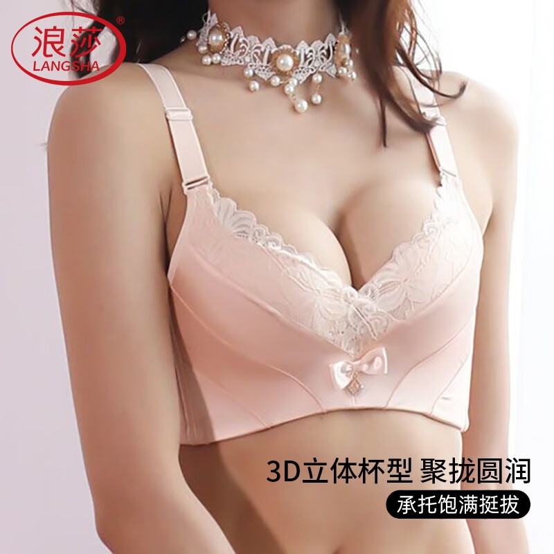 浪莎内衣女小胸聚拢防下垂锦绣蕾丝款无钢圈上薄下厚性感文胸罩