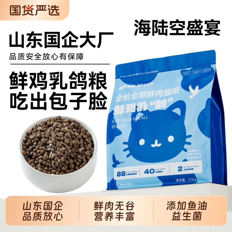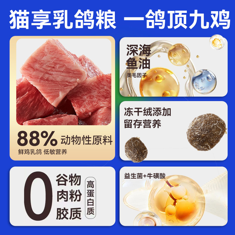 猫享乳鸽猫粮鲜肉无谷冻干成幼猫专用全价猫粮鱼油益生菌10斤试吃