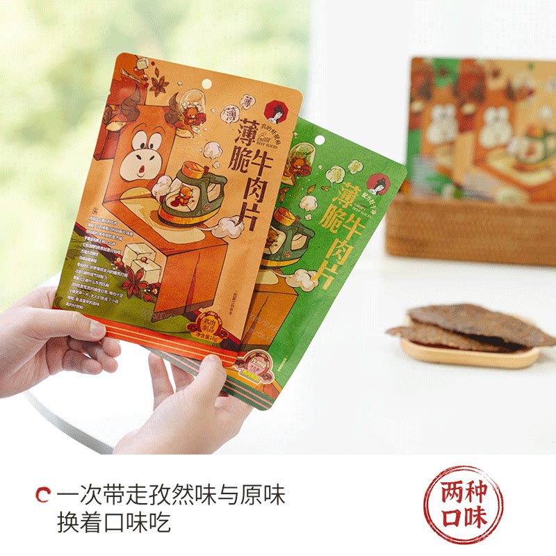 【年货节预售】茶颜悦色薄脆牛肉片原味孜然味牛肉脆高蛋白9袋
