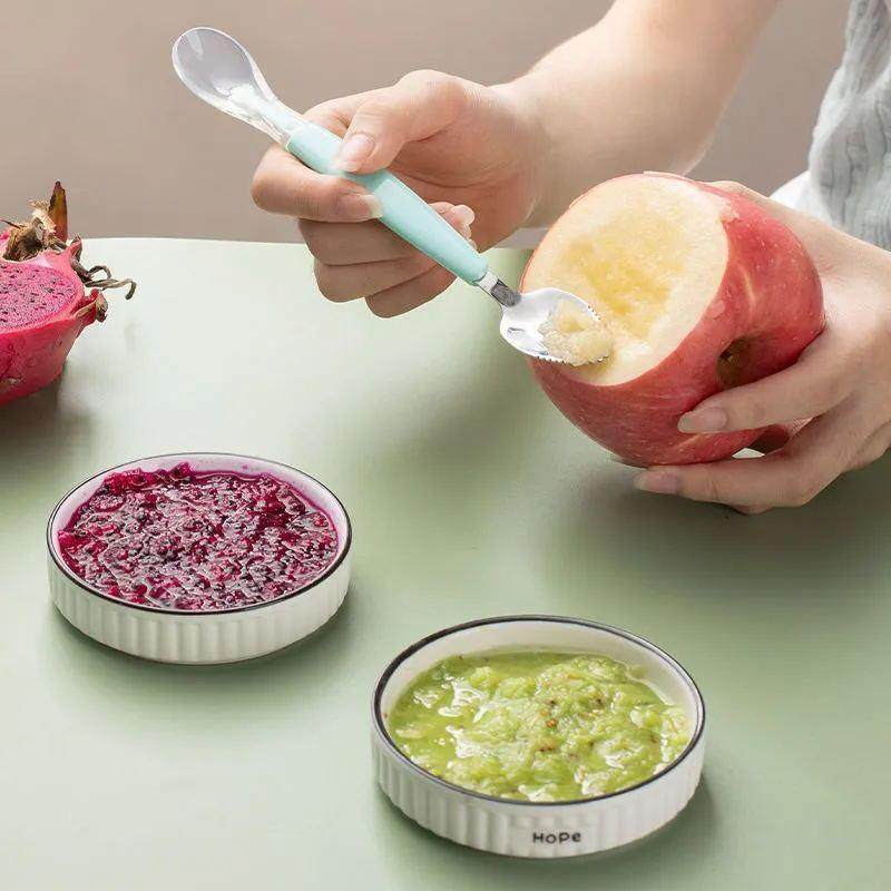 304不锈钢双头刮泥勺婴幼儿辅食喂养工具果泥勺儿童餐具两用软勺