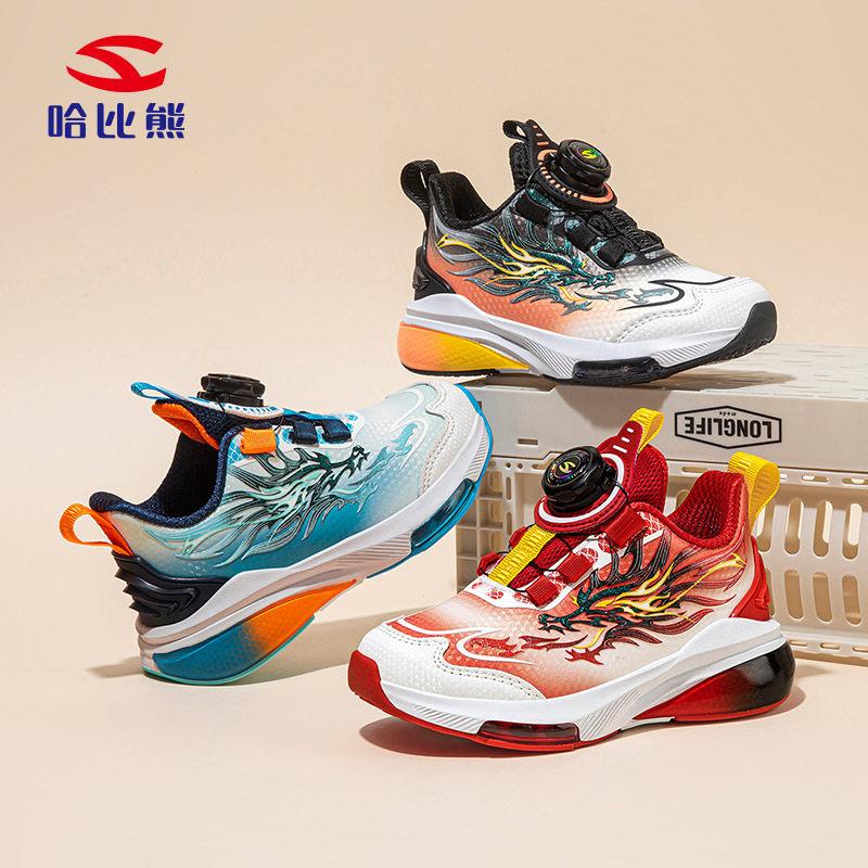 哈比熊童鞋扭扭儿童运动鞋男童网鞋2025春秋季新款中大童跑步红色