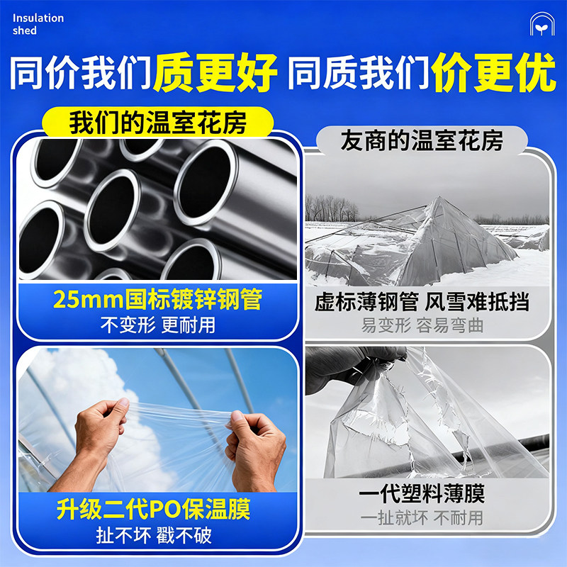 暖棚花房庭院阳光房家用温室保温棚钢管骨架花卉多肉冬季蔬菜大棚