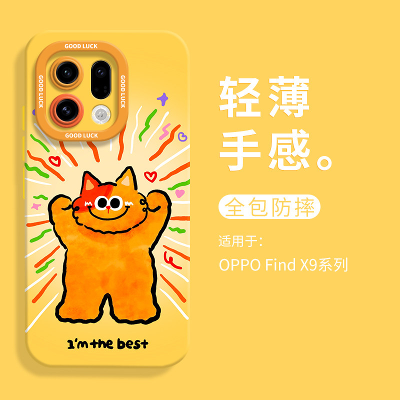 卡通自信猫猫适用oppofindx9手机壳findx9pro全包瞳眼硅胶壳x9液态软壳OPPO保护套x9pro男女网红可爱