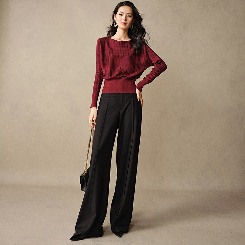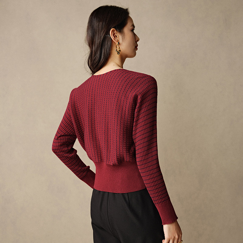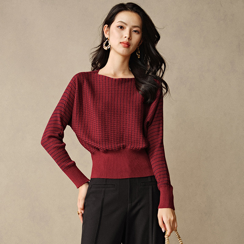 晚白2025秋冬新款时尚新年圣诞本命年红色上衣气质一字领针织衫女