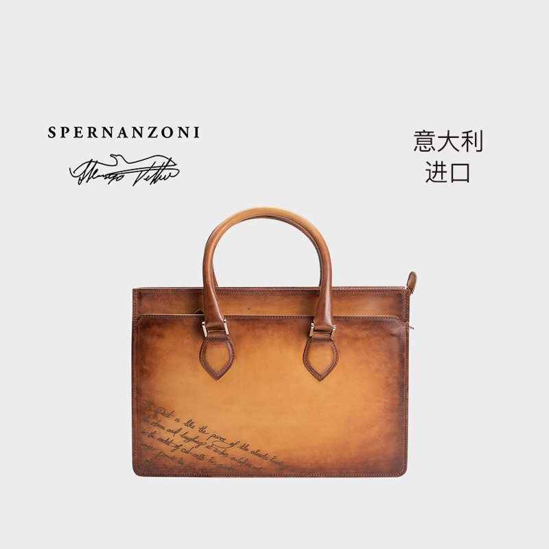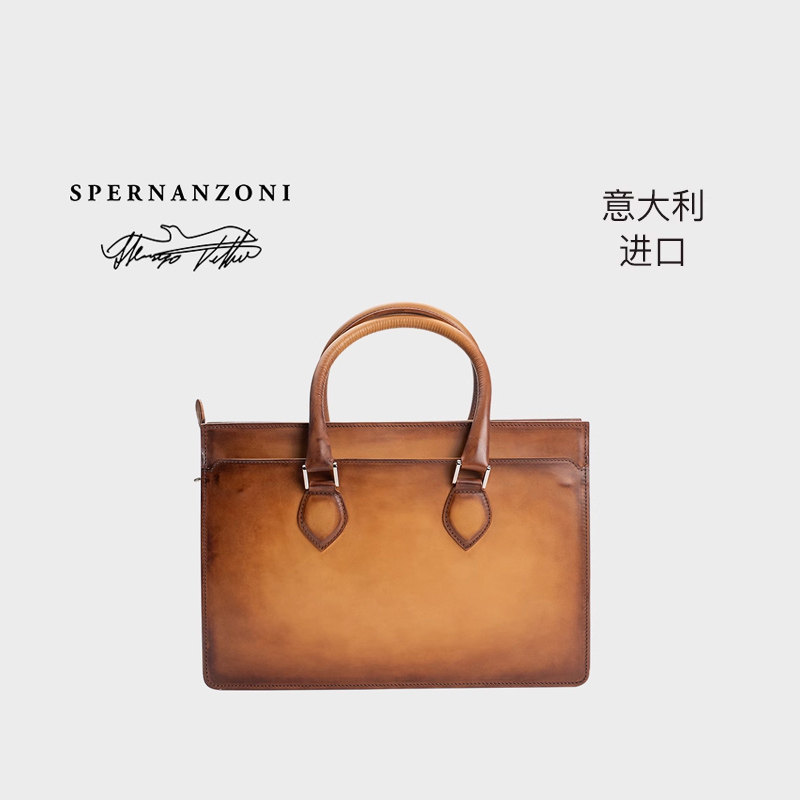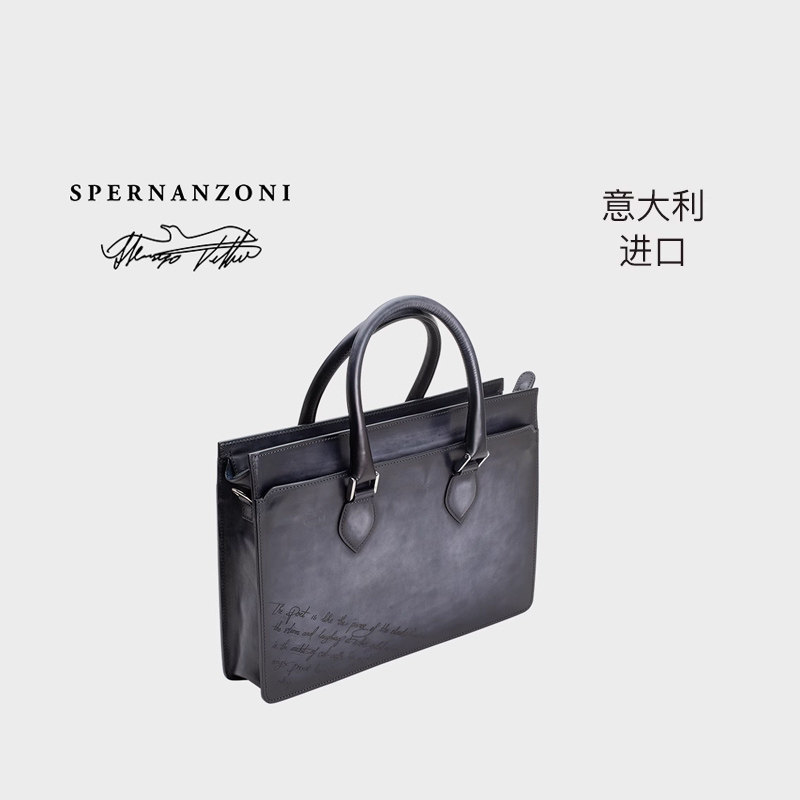Spernanzoni意大利进口男士复古商务激光雕刻公文手提包ECONOMIST