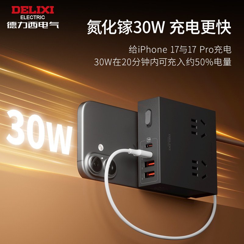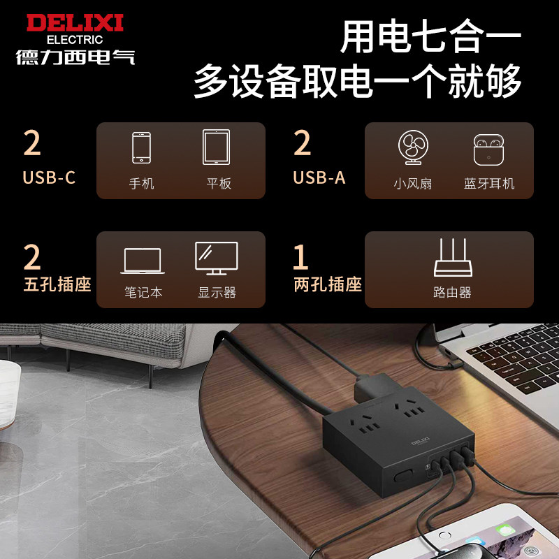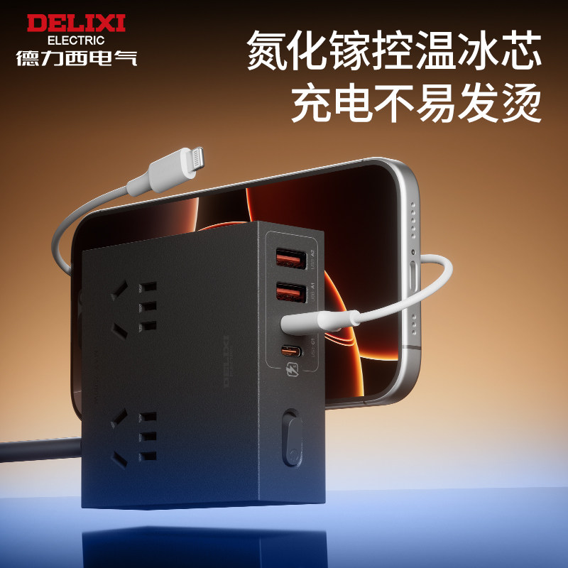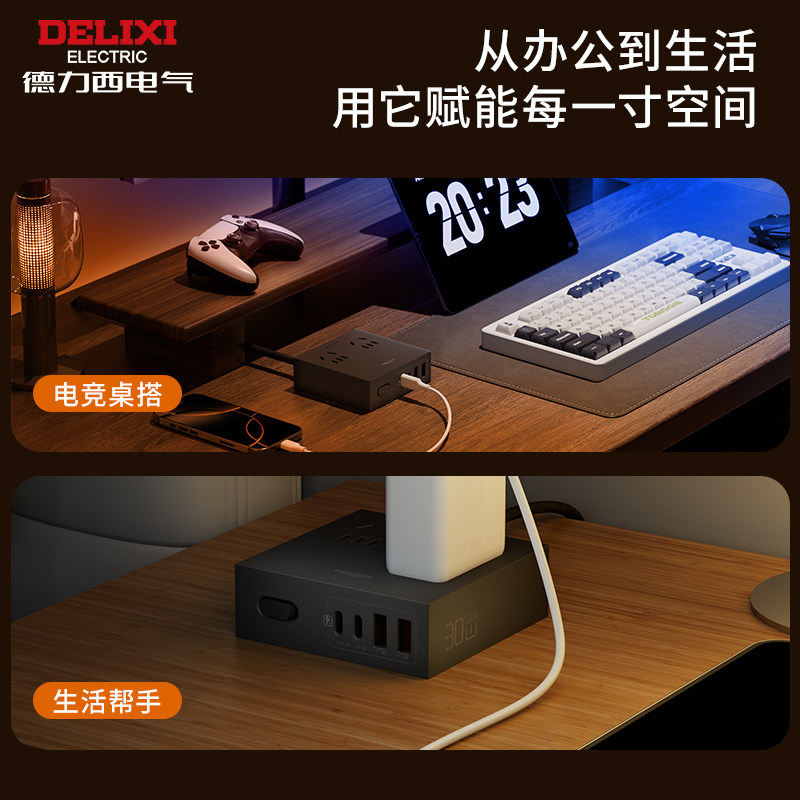 德力西插座插排排插充电氮化镓转换器快充多功能桌面插线板大功率