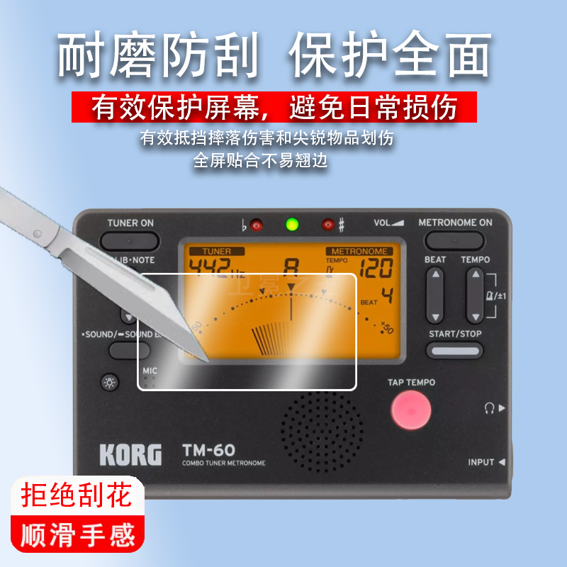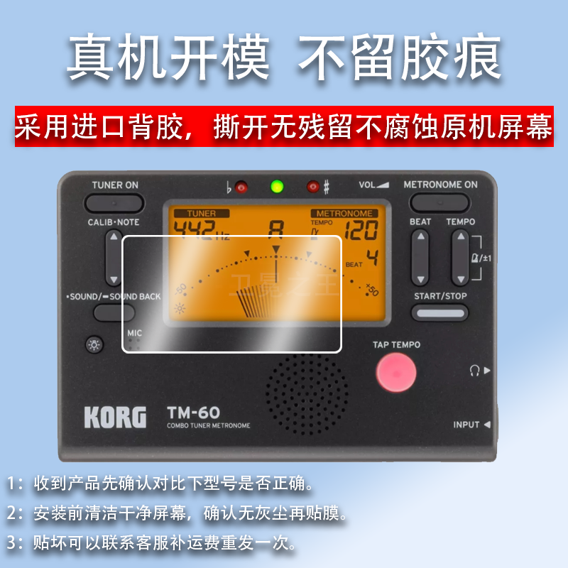 适用于KORG TM-60贴膜pa700吉他调音节拍器TM60C保护膜TM-50/TM-50TR贝司提琴古筝电子校音表屏幕膜非钢化膜
