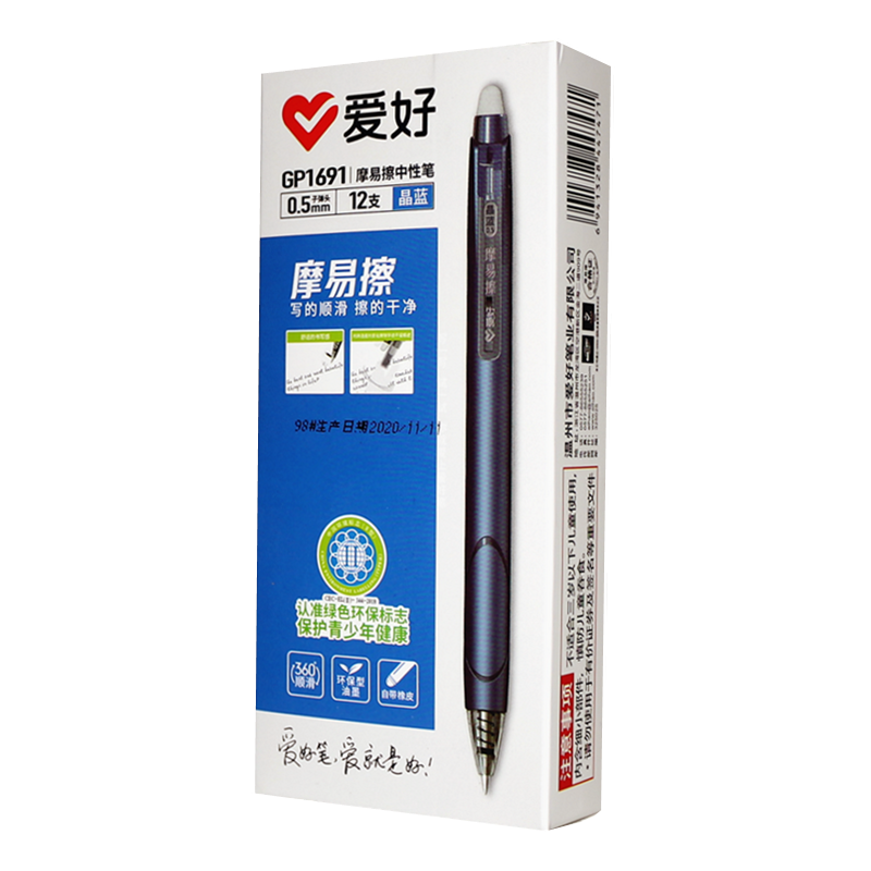 爱好按动摩易擦笔1691热可磨魔力易擦水笔小学生晶蓝黑可擦中性笔
