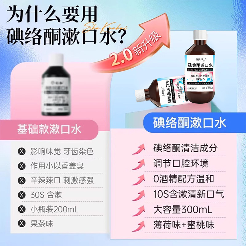 聚维酮碘含漱液杀菌除口臭漱口水持久留香清新口气清洁口腔漱口液