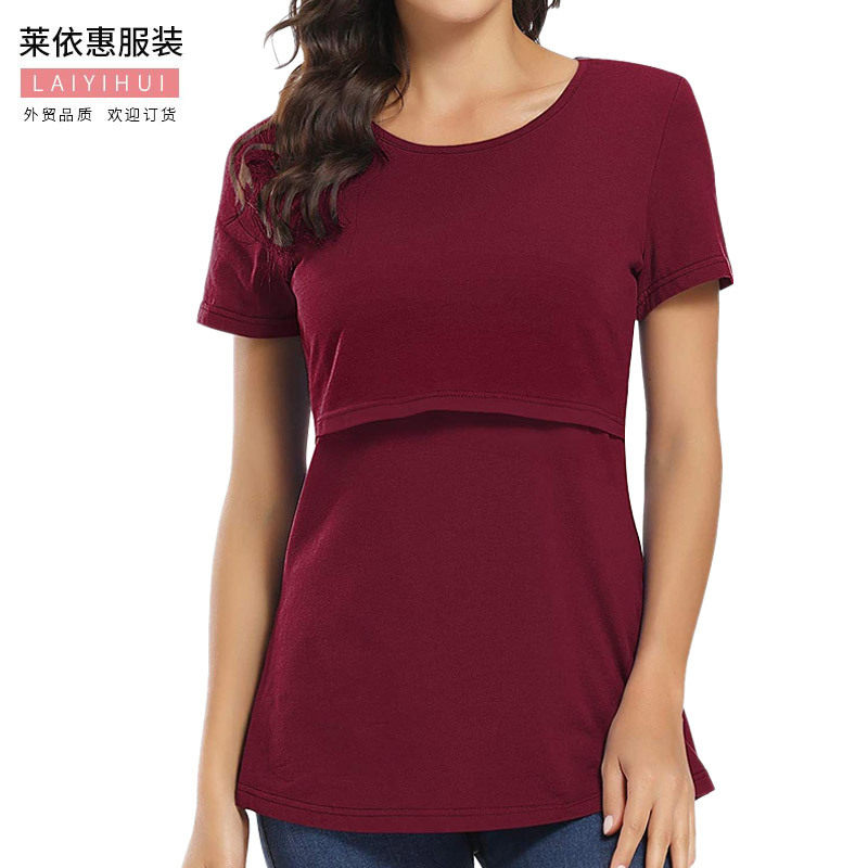 欧美哺乳衣外出辣妈款孕妇上衣夏季打底衫喂奶t恤孕妇短袖月子服
