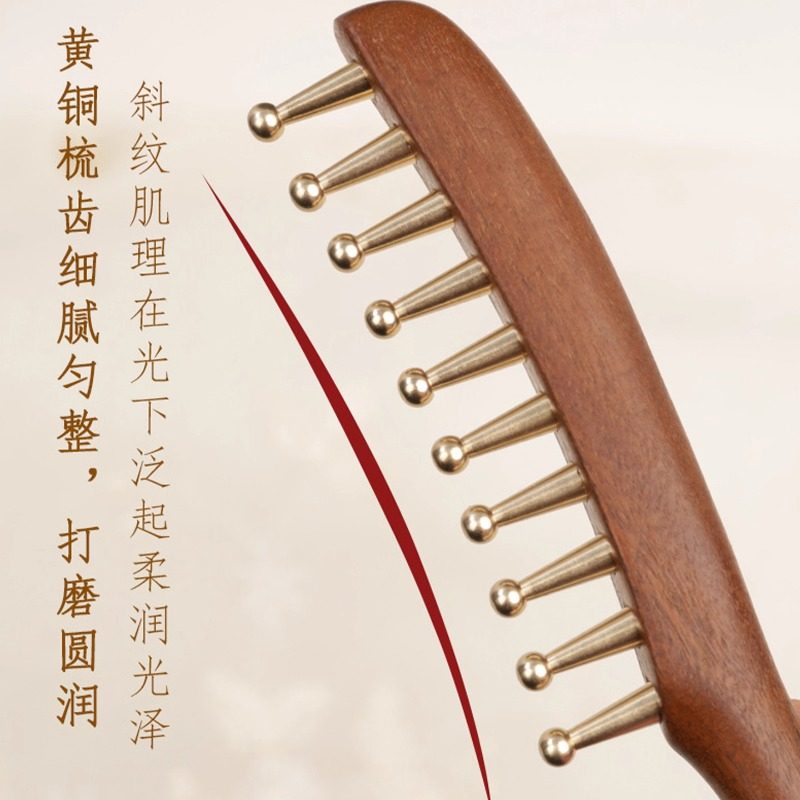 黄铜头部按摩梳子经络疏通拨筋棒大齿梳子头皮头疗养生刮痧宽齿梳
