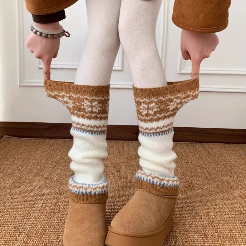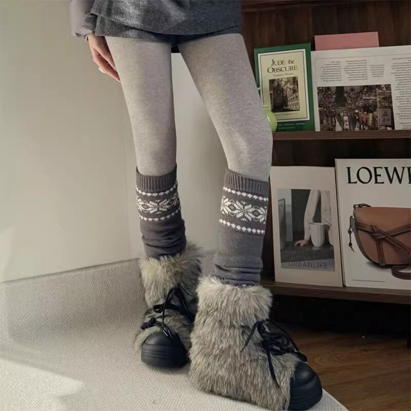 费尔岛堆堆袜子女秋冬袜套中筒袜加厚保暖小腿袜针织腿套灰色长袜