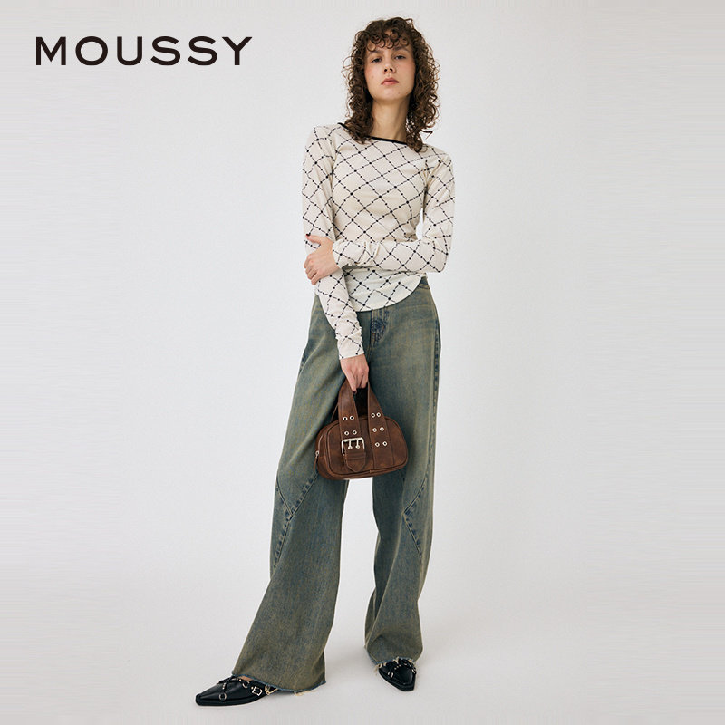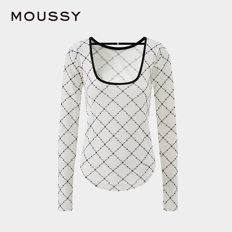 moussy 秋季复古港风设计感菱格纹内搭上衣010HAA80-8561