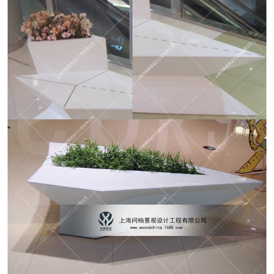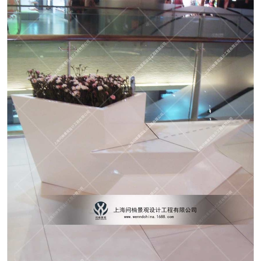 商业美陈 商场植物花盆装饰玻璃钢创意几何造型花缸花艺花器
