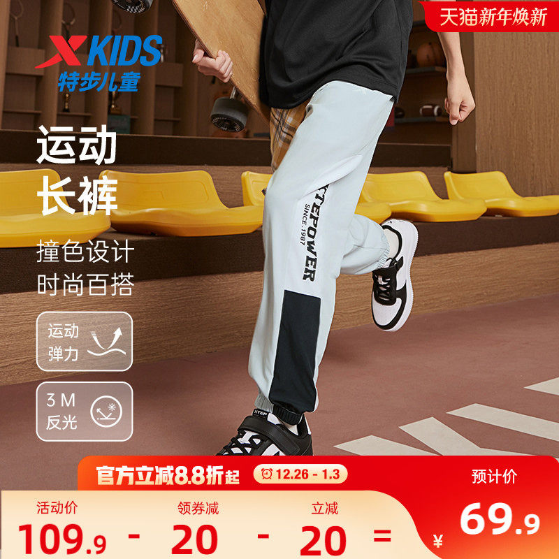 特步童装儿童速干运动裤男童潮酷跑步裤秋冬新款中大童防蚊裤冬装