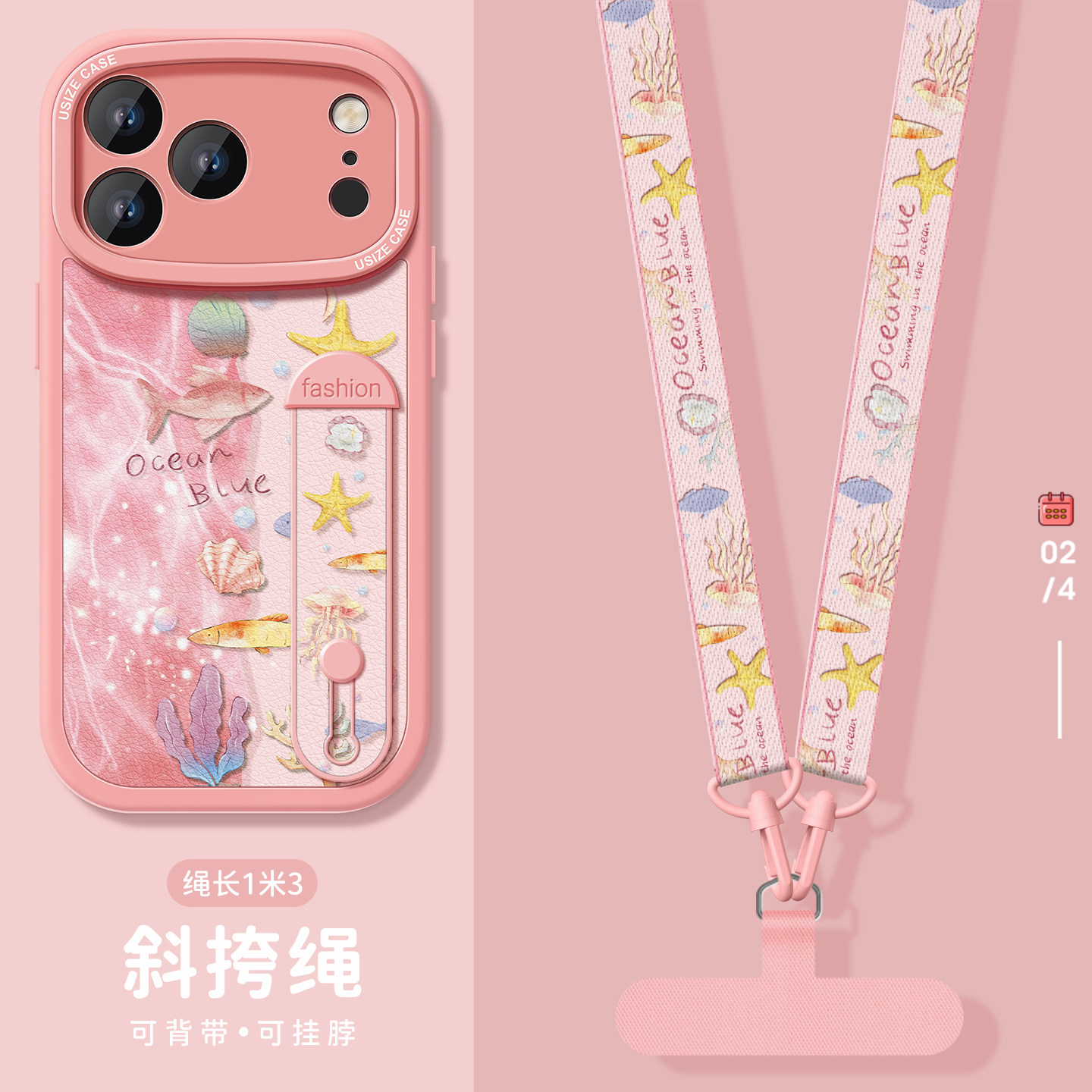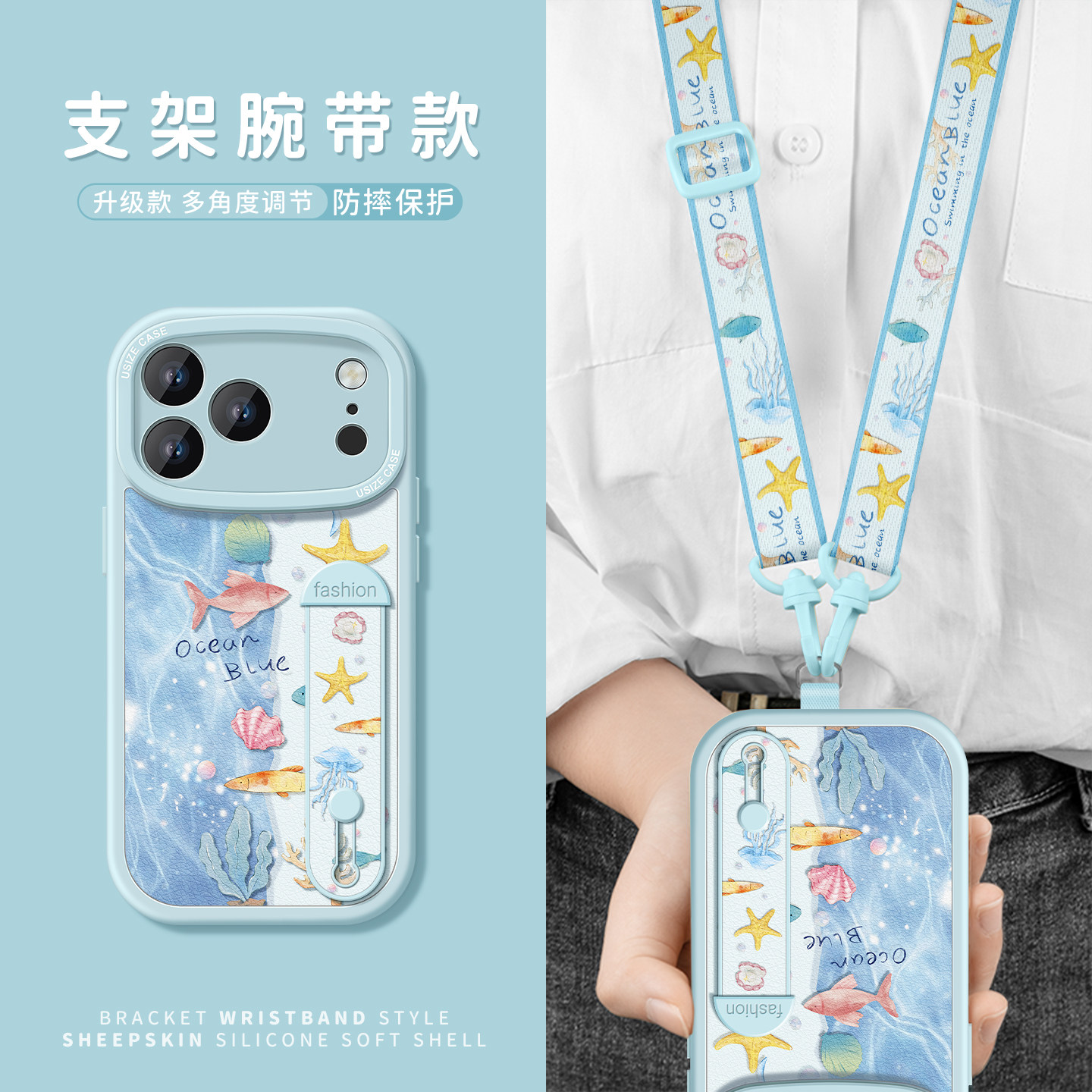 夏威夷小鱼适用苹果17promax手机壳新款iPhone17腕带支架斜挎17pro可背带挂绳17air女plus硅胶镜头全包十七