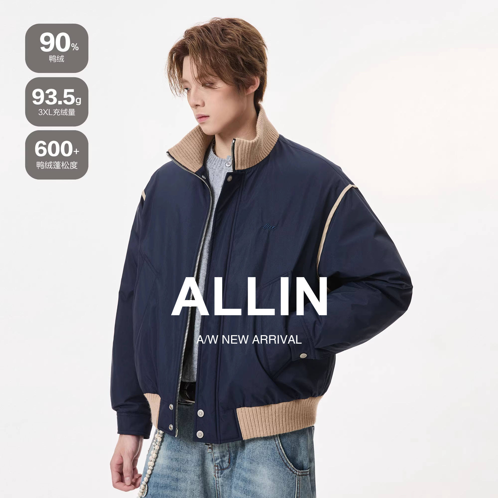 ALLIN 美式廓形飞行夹克羽绒服男女冬季加厚保暖潮牌高街短款外套