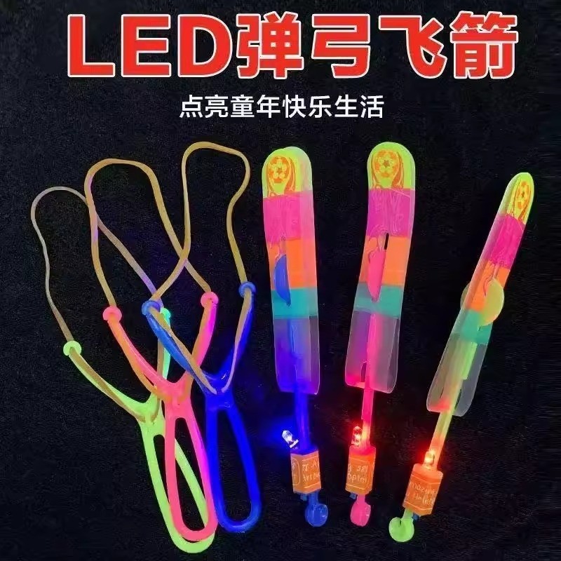 大号双闪弹弓飞箭地摊热卖飞天发光弹射竹蜻蜓飞行器户外儿童玩具