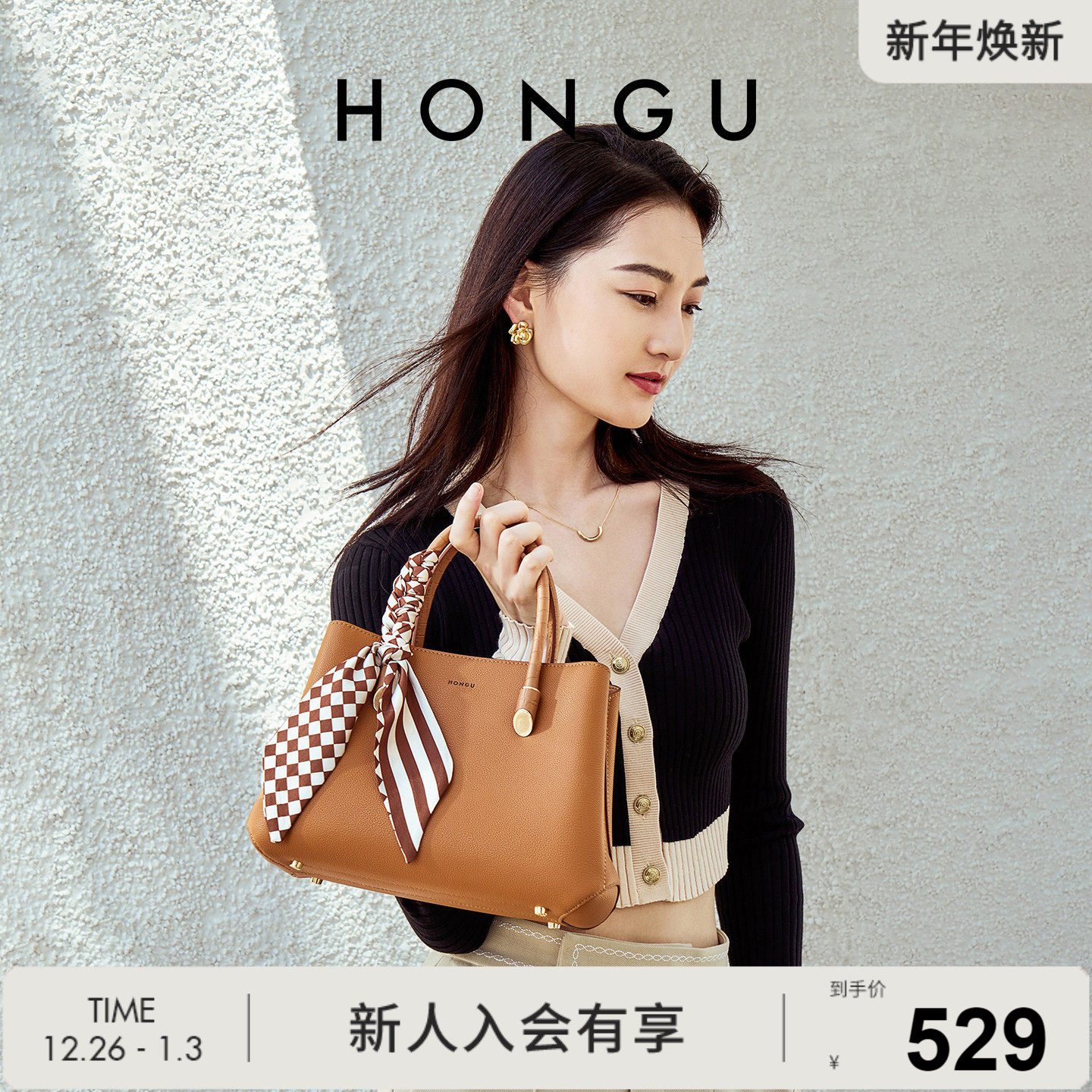 红谷包包女式新款牛皮单肩手提包大容量手拎包大气通勤女士妈妈包