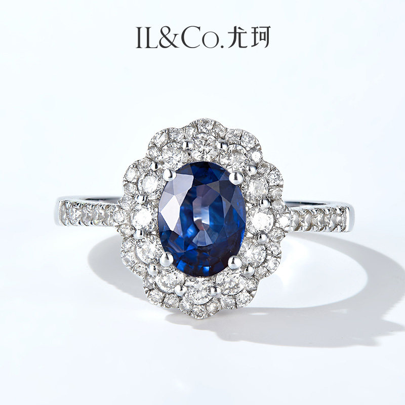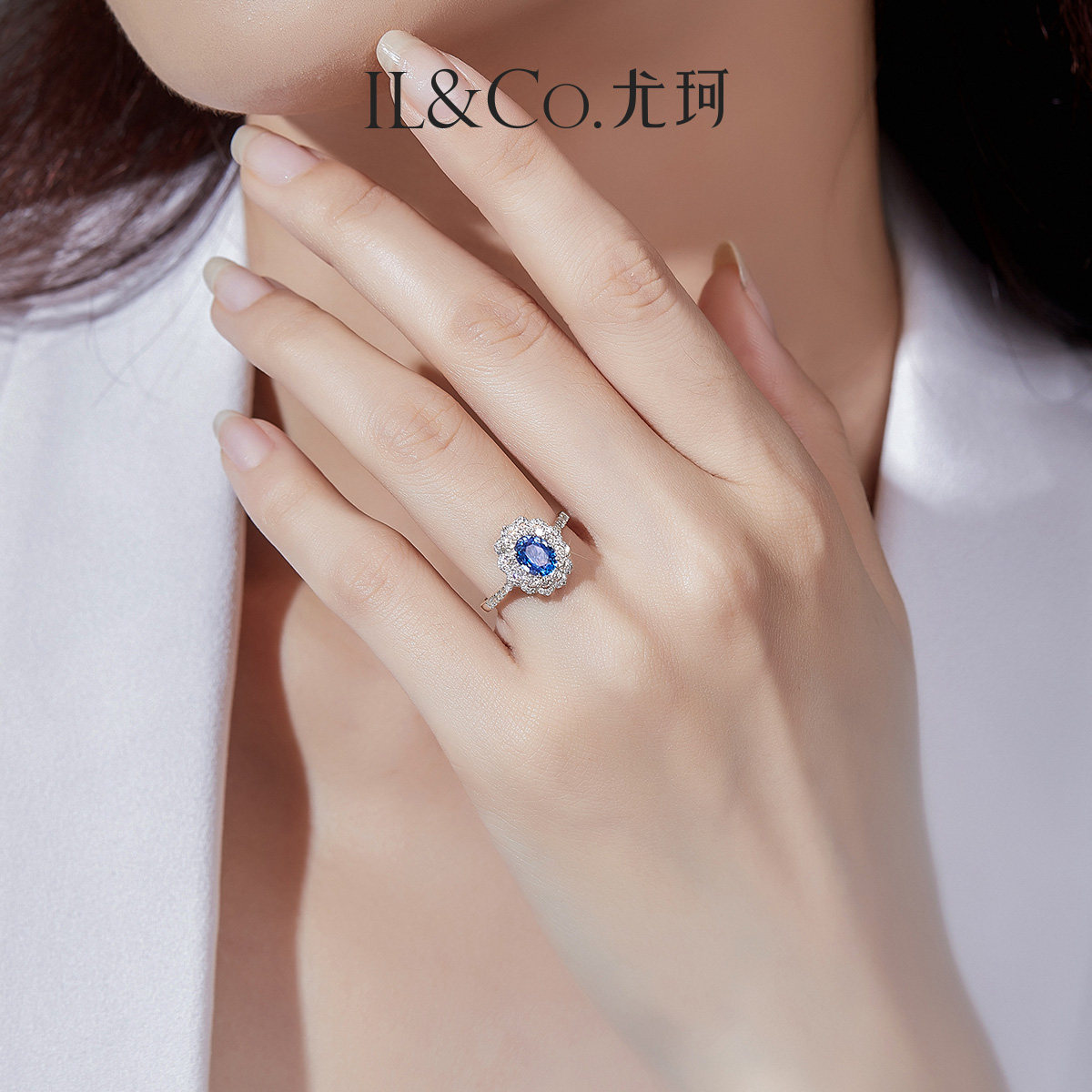 ILCO尤珂「奢黛之花」18K金蓝宝石戒指彩金天然彩宝镶嵌钻石女戒