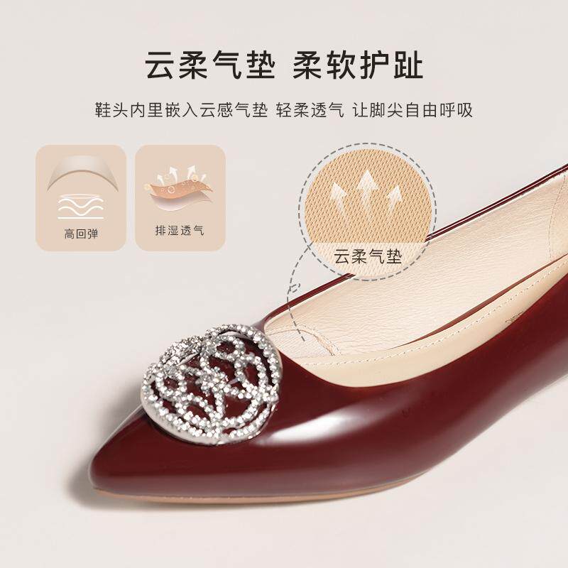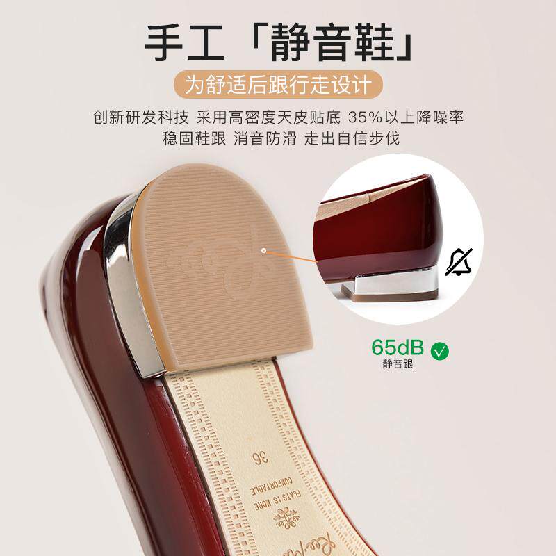 【明星同款|静音系列】千百度练习曲裸色高跟鞋真皮通勤法式单鞋