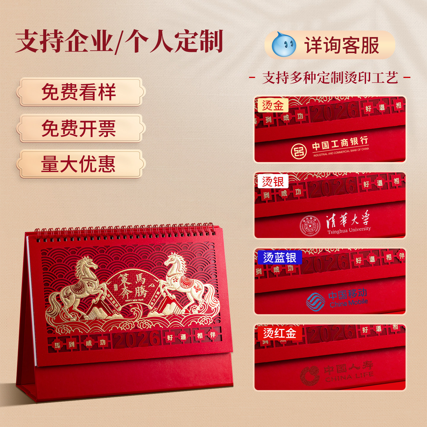 2026年台历精雕镂空手撕日历策马奔腾中国红新年日历红色喜庆台历制作企业年会企业礼品桌面台历月历定做定制