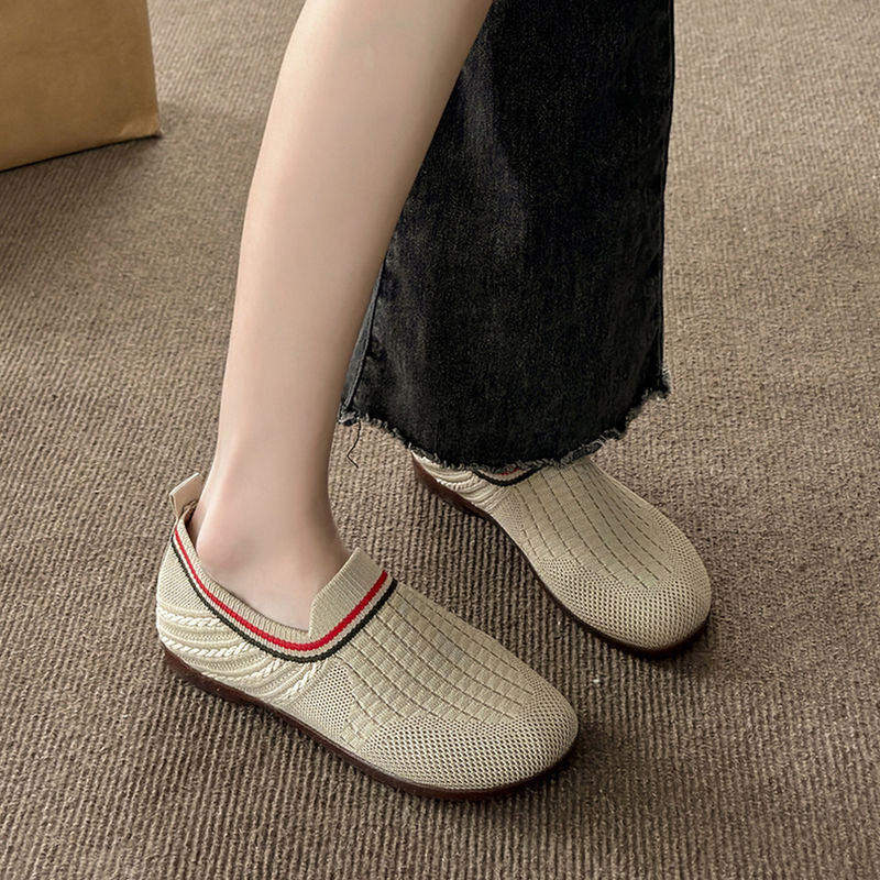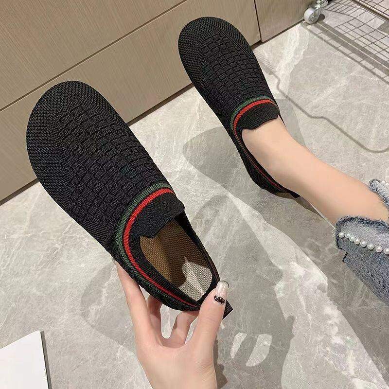 春季新款飞织透气女单鞋浅口一脚蹬软底女鞋懒人鞋时尚休闲妈妈鞋