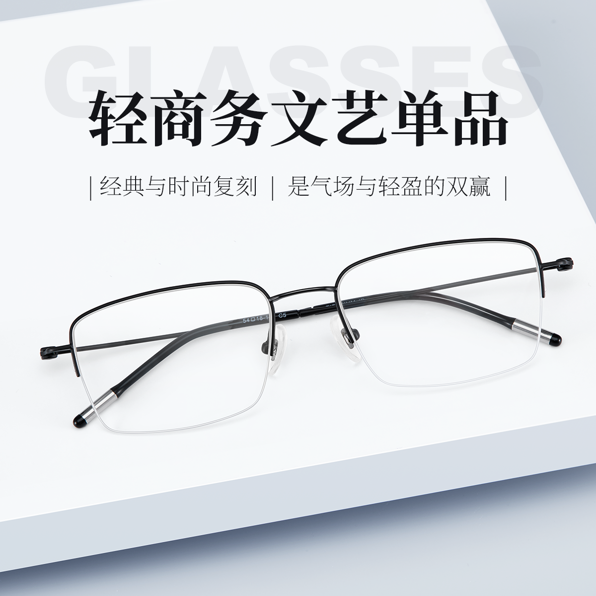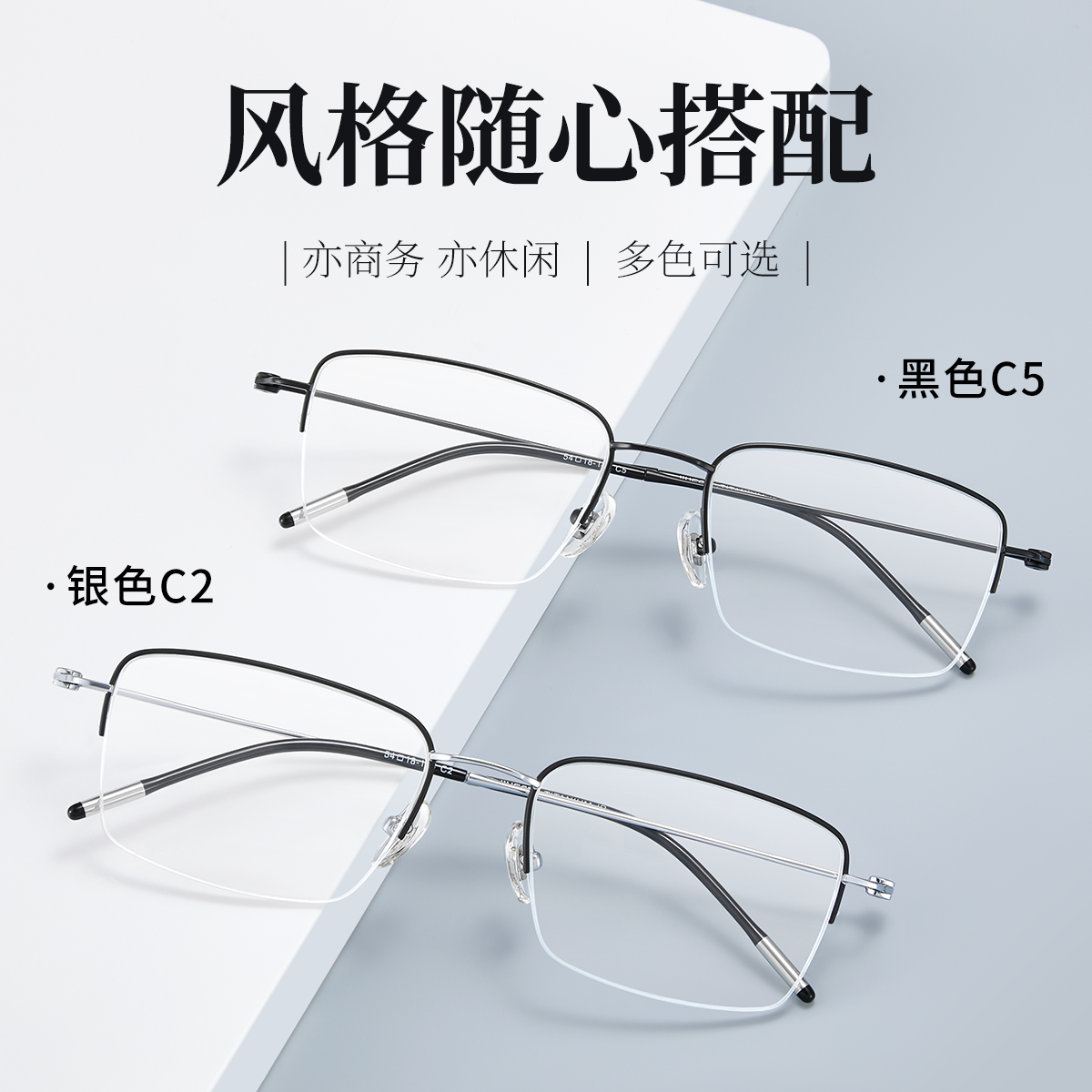 蔡司眼镜男款超轻纯钛4克眉线框商务防蓝光可配度数近视眼镜36165