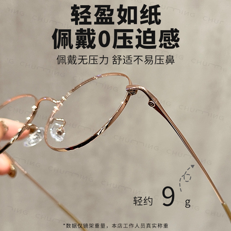 超轻钛架9g玫瑰金色小圆框近视眼镜女度数