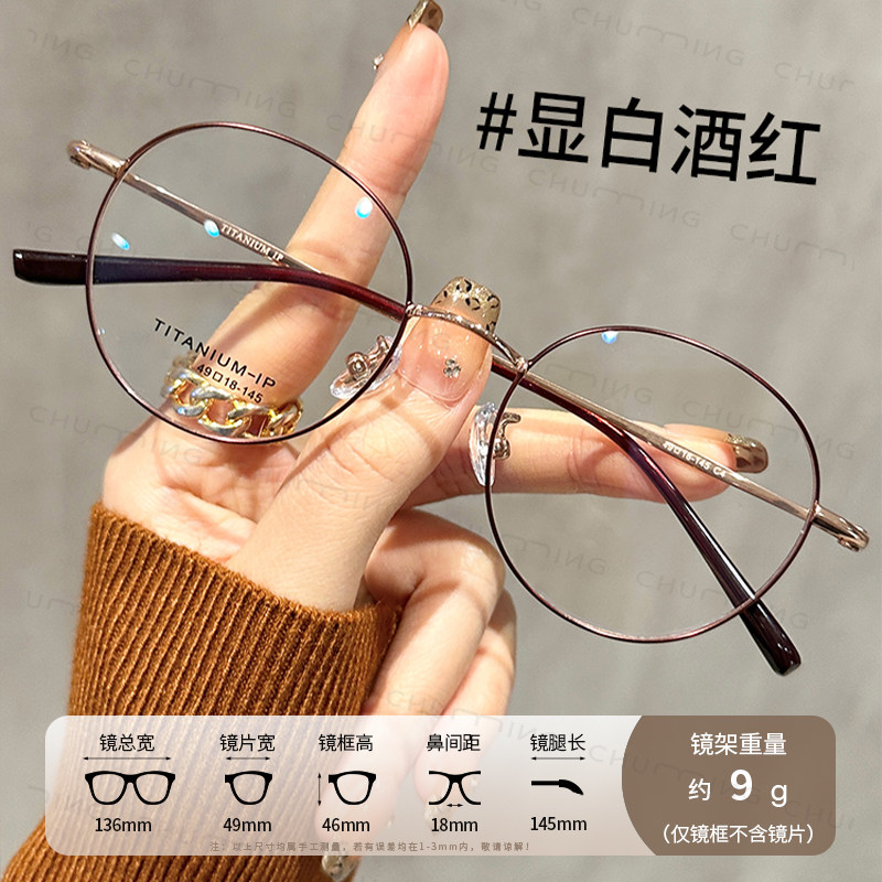 纯钛圆框近视眼镜蔡司防蓝光女可配度数素颜文艺细边眼镜框镜架男