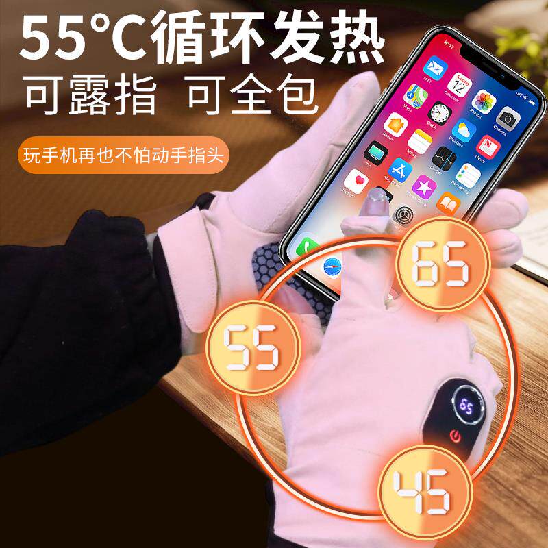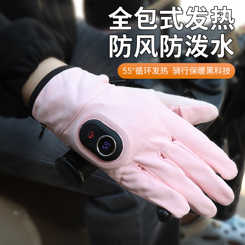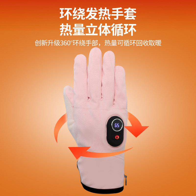 粉色电加热手套便携充电加热手套发热暖手神器插电式暖手宝冬季保暖女士冬天2025新款电动车摩托车骑行女生款