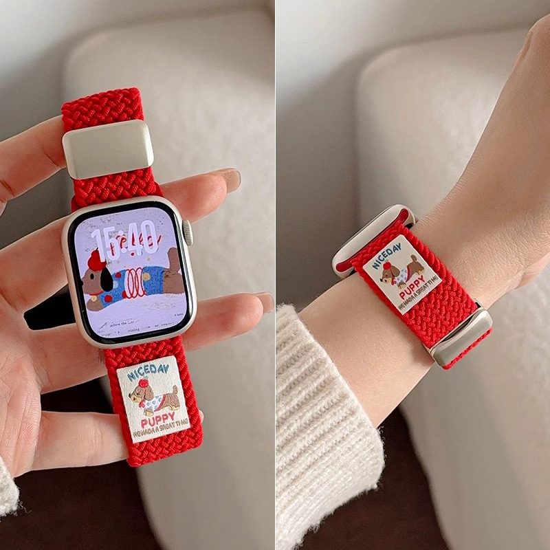 腊肠小狗适用小米手环9pro表带弹力磁吸扣8Pro编织尼龙替换腕带红米watch5/4运动男女夏天防汗透气星光