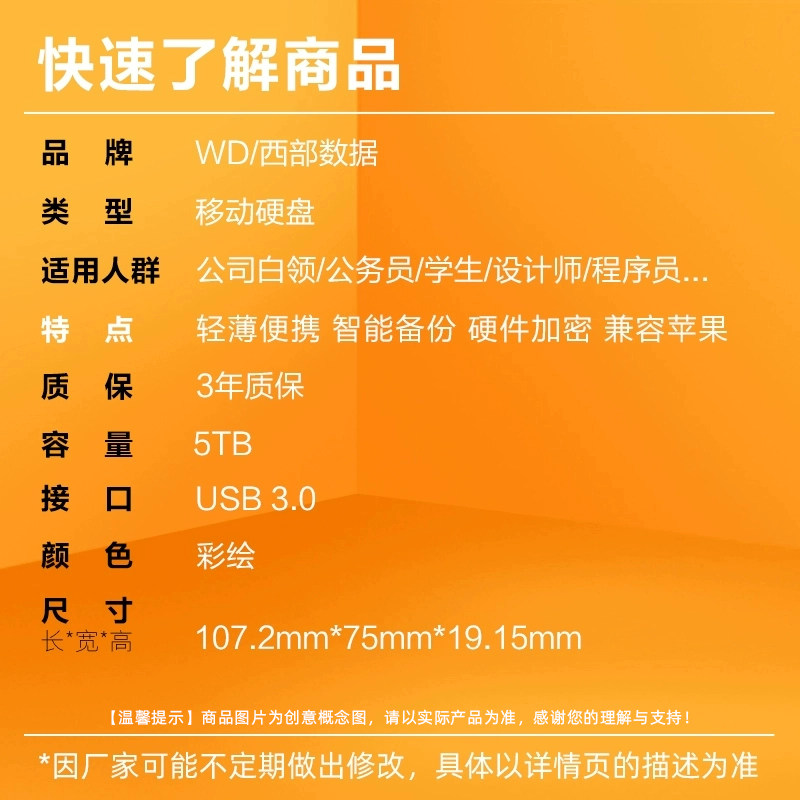 WD西部数据移动硬盘4tb电脑笔记本手机西数4t彩绘定制加密