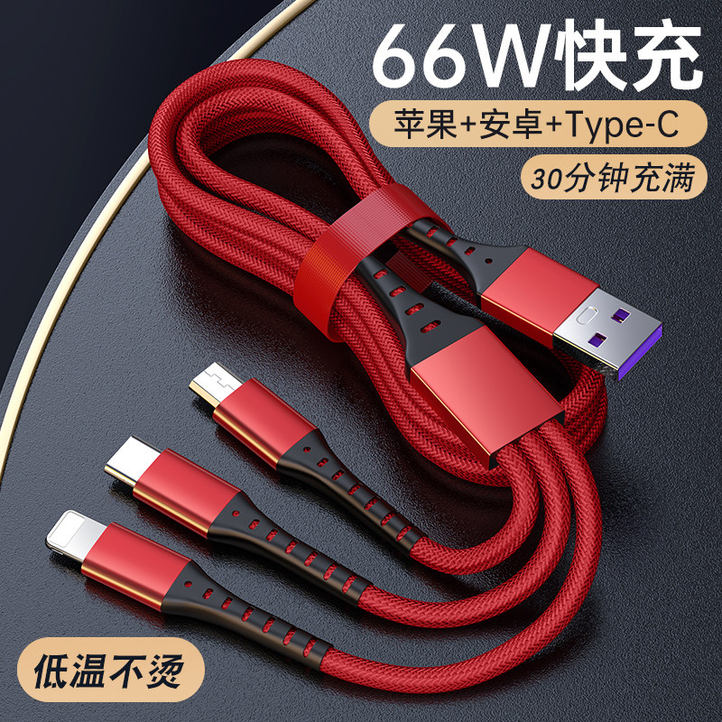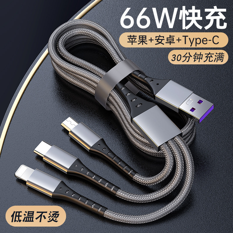 66w快充数据线三合一充电线一拖三适用于苹果安卓typec手机线tpyec