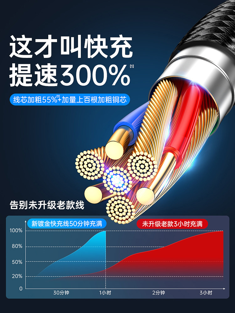 超级快充三合一数据线通用充电线适用苹果荣耀华为OPPO小米VIVO手机通用车载一拖三数据线透明芯片type-c带灯