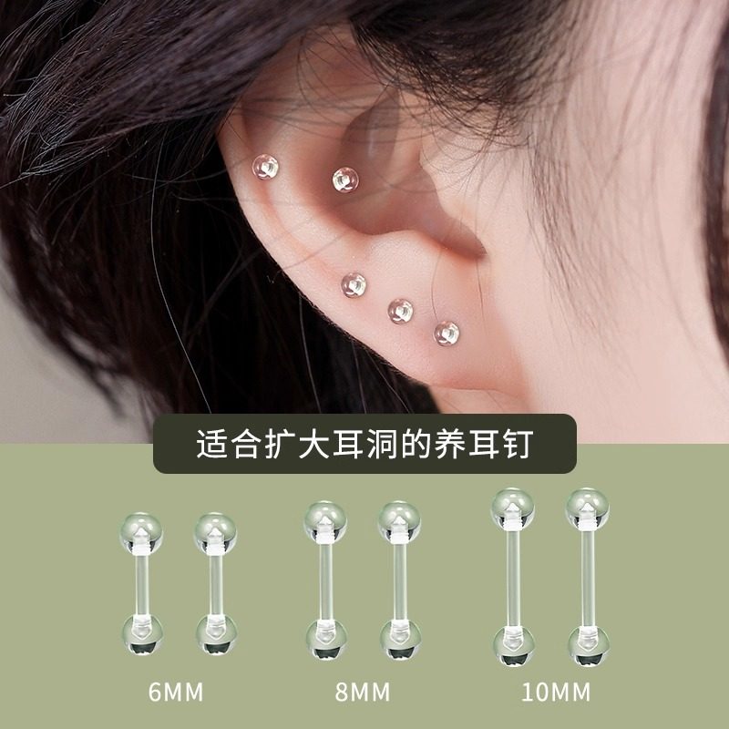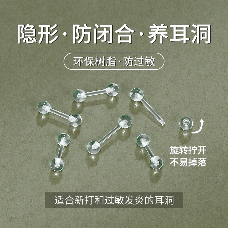 养耳洞树脂耳钉女透明隐形耳棒耳骨钉扩耳防堵针学生免摘耳饰螺旋