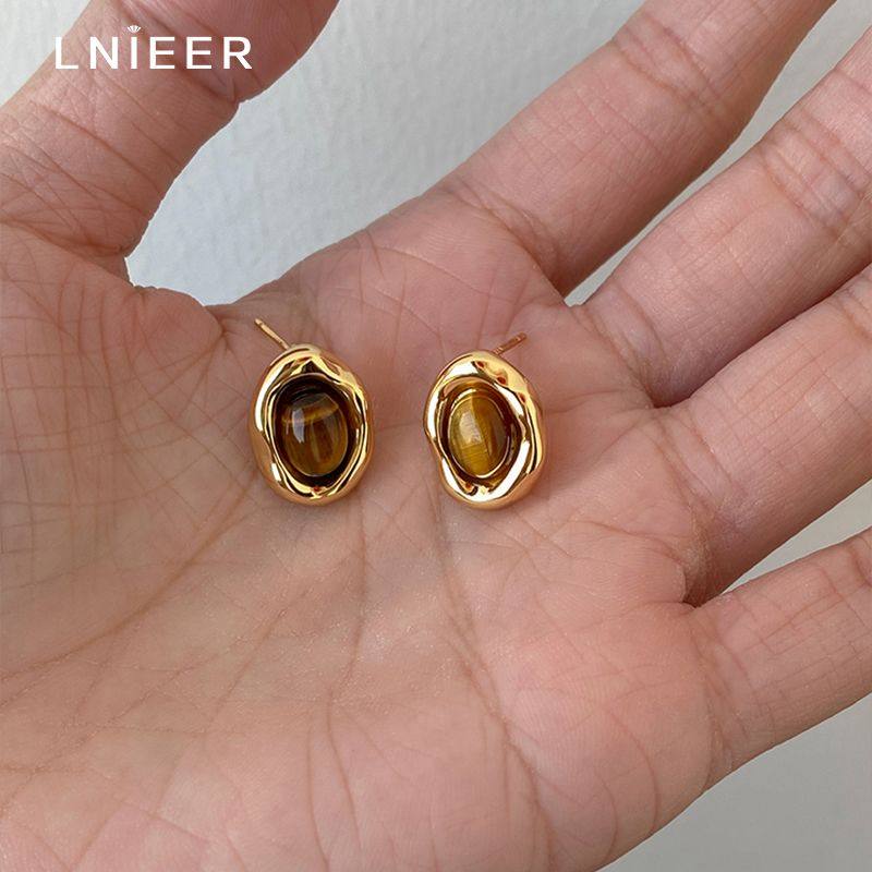 S925银针美拉德虎眼石耳钉女糖炒栗子氛围感复古耳环秋冬爆款耳饰