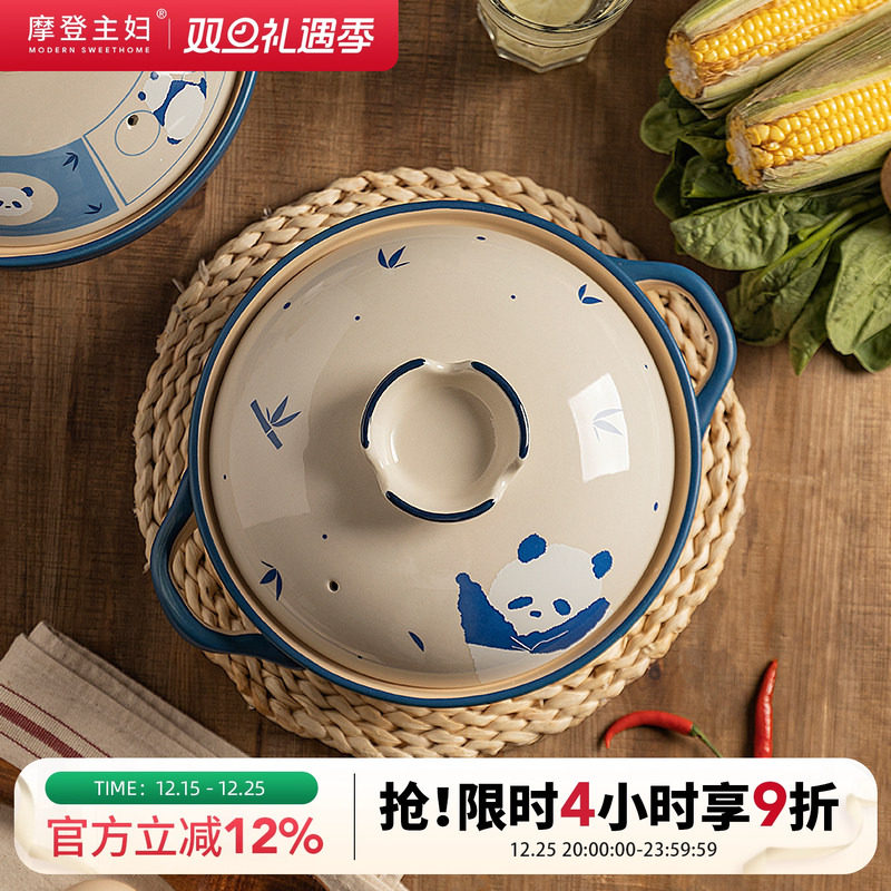摩登主妇mototo熊猫砂锅耐高温干烧不裂家用燃气灶专用煲汤陶瓷锅