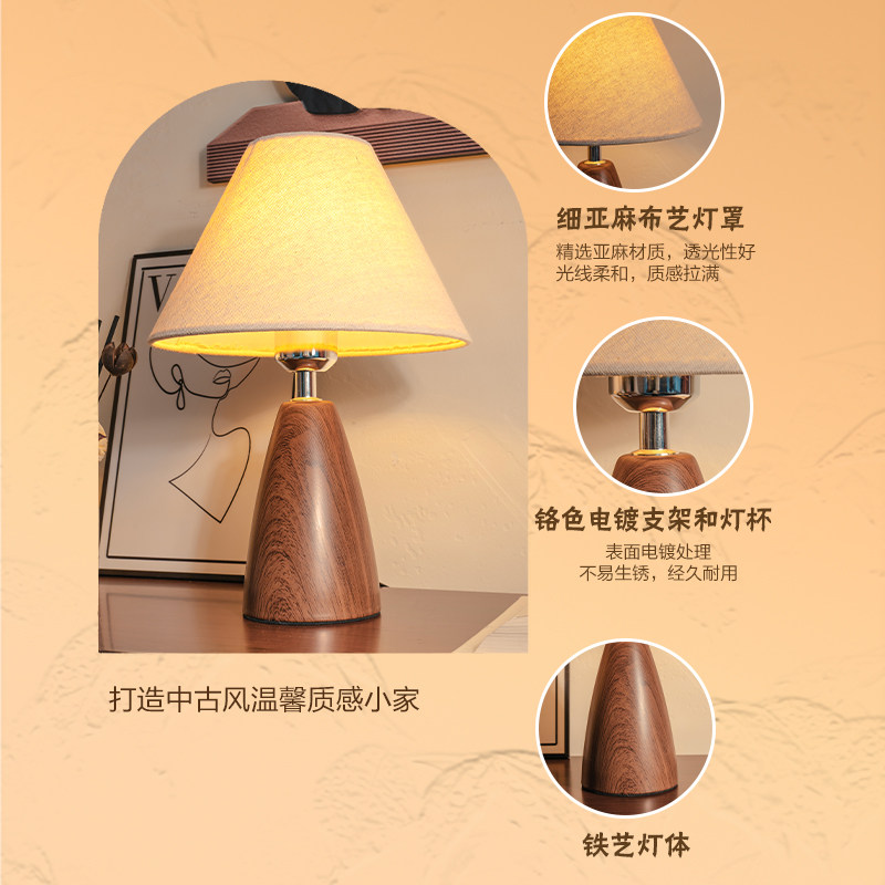 中古vintage实木台灯侘寂风卧室高级感新中式复古氛围床头灯美式