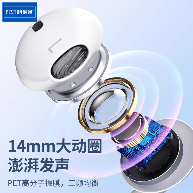 佰通MP3有线耳机高音质3.5mm口半入耳式线控手机听歌通话耳塞批发