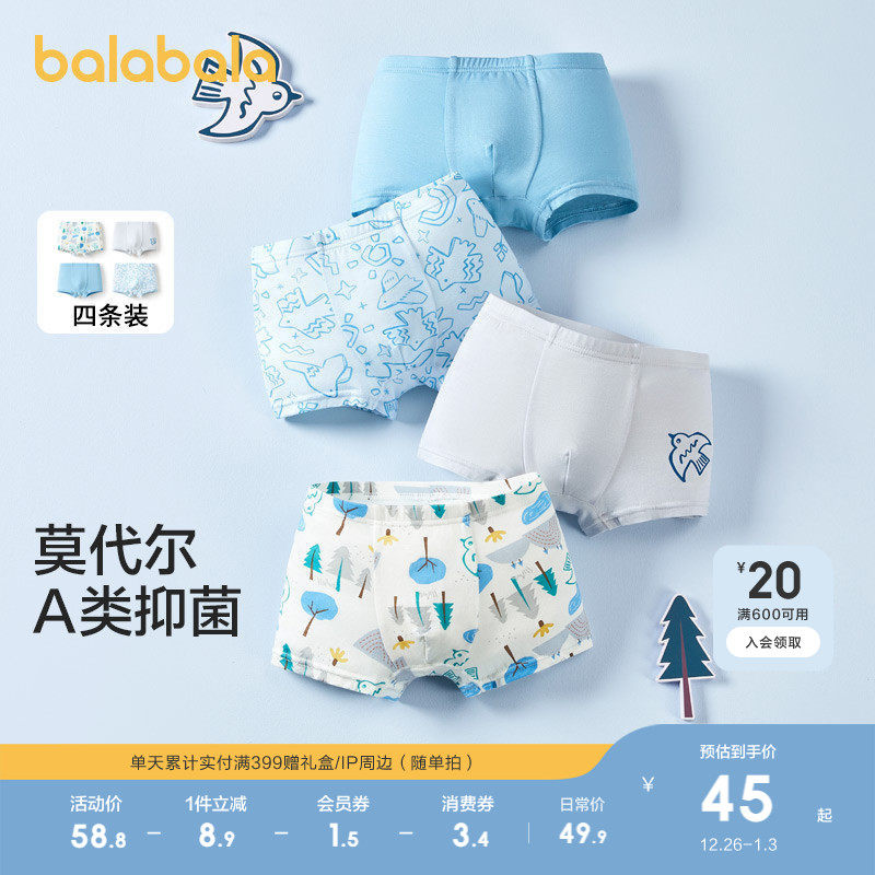 【balaOne】巴拉巴拉儿童内裤棉男童不夹pp抗菌裆四角短裤三条装