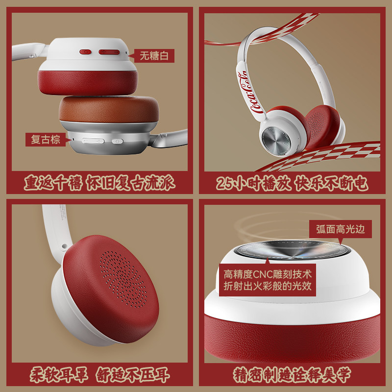 可口可乐联名无线蓝牙耳机头戴式耳机降噪耳麦新款女生生日礼物男