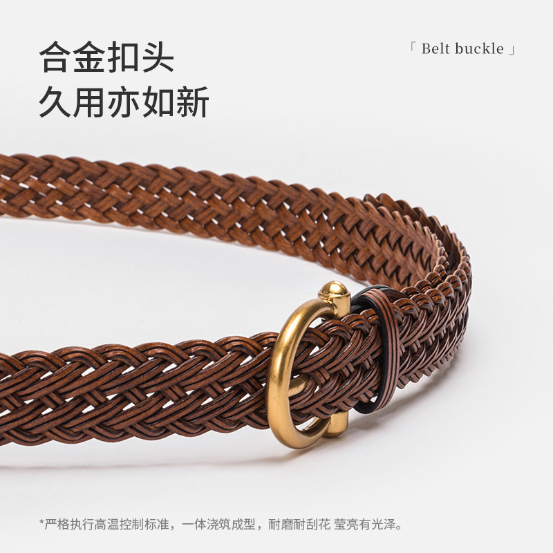 navigare意大利小帆船新款编织皮带女时尚百搭简约真皮针扣腰带