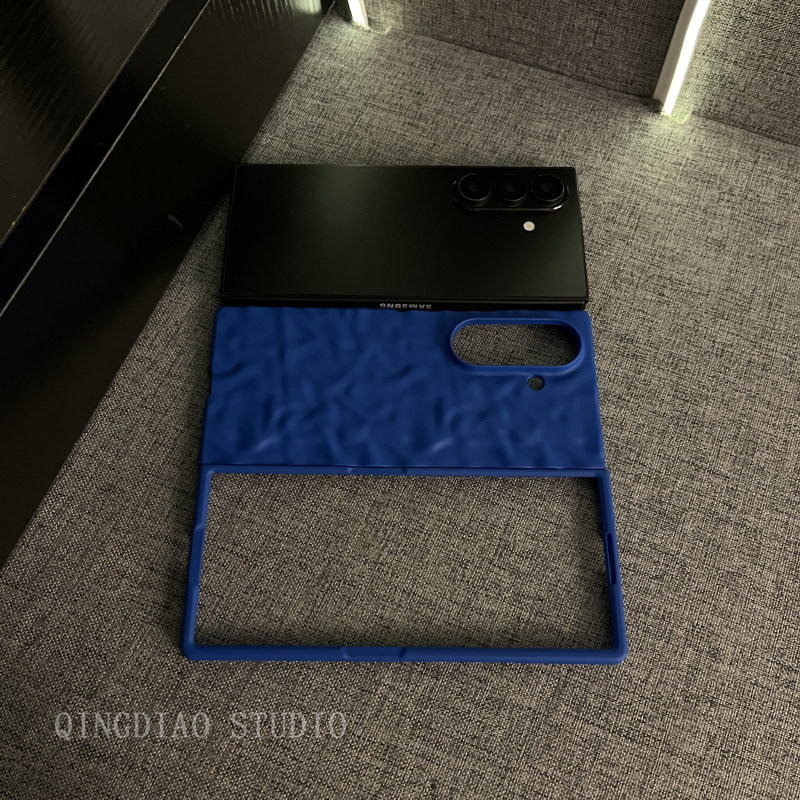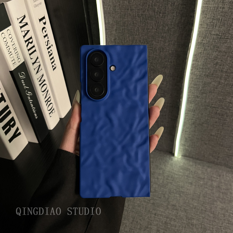 轻调 日韩极简风褶皱克莱因蓝适用于三星zfold7/6/5/4三星Galaxy Z W26手机壳新款折叠屏翻盖防摔保护套