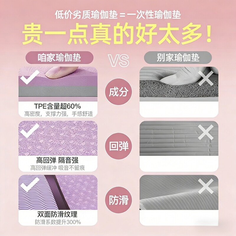 初学者瑜伽垫健身垫防滑地垫家用tpe运动双人垫微瑕加宽加长垫子